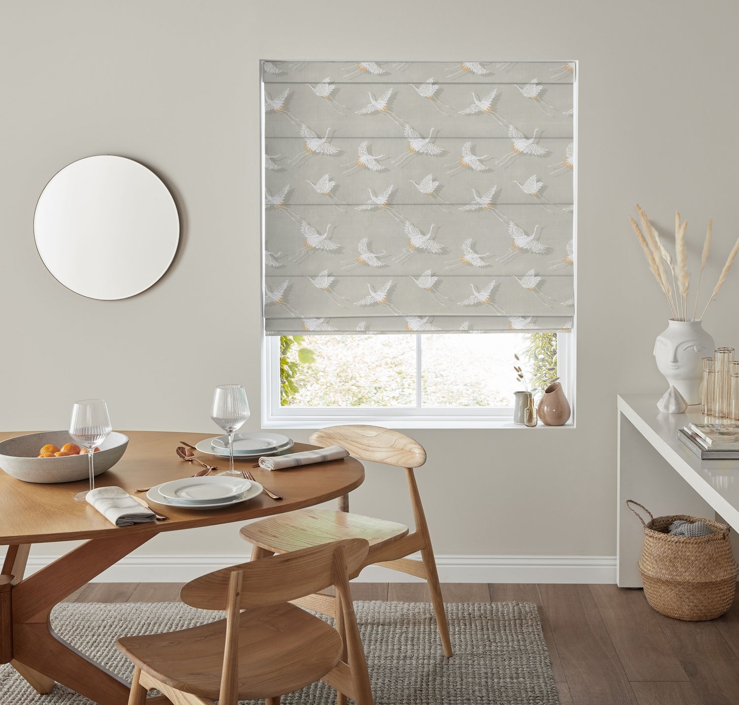 designed to fold into pleats, giving the appearance of a concertina. When the Roman blind is closed, the pleats unwind, enabling the fabric to completely cover your window. When the blind is opened, the pleats neatly stack at the top. Roman Blinds are also a popular automated blind.