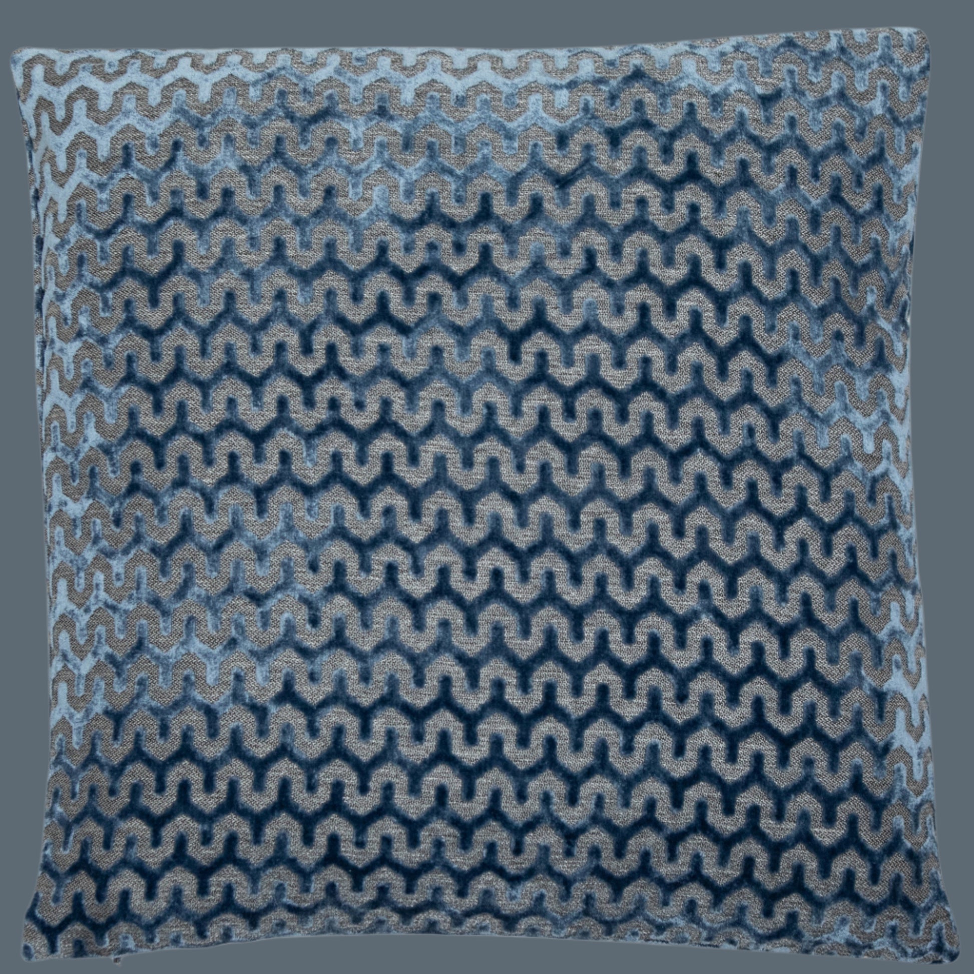 Tactile cut velvet cushion with a ripple wave pattern