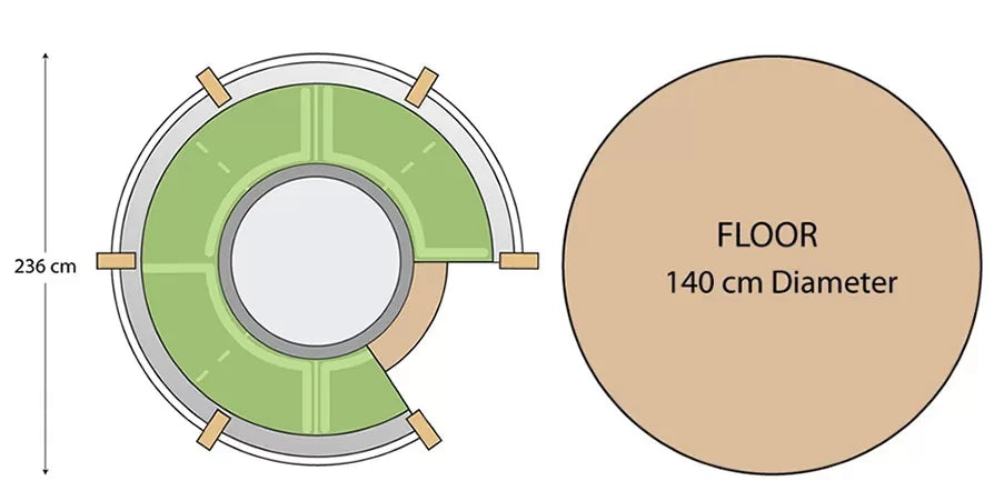 An area of 246cm x 246cm is required for the Rotating Seater to rotate freely. A hard standing base of no less than 140cm x 140cm is required to build your Rotating Seater onto. Your sphere can be installed onto a level paved, concrete or decked area.